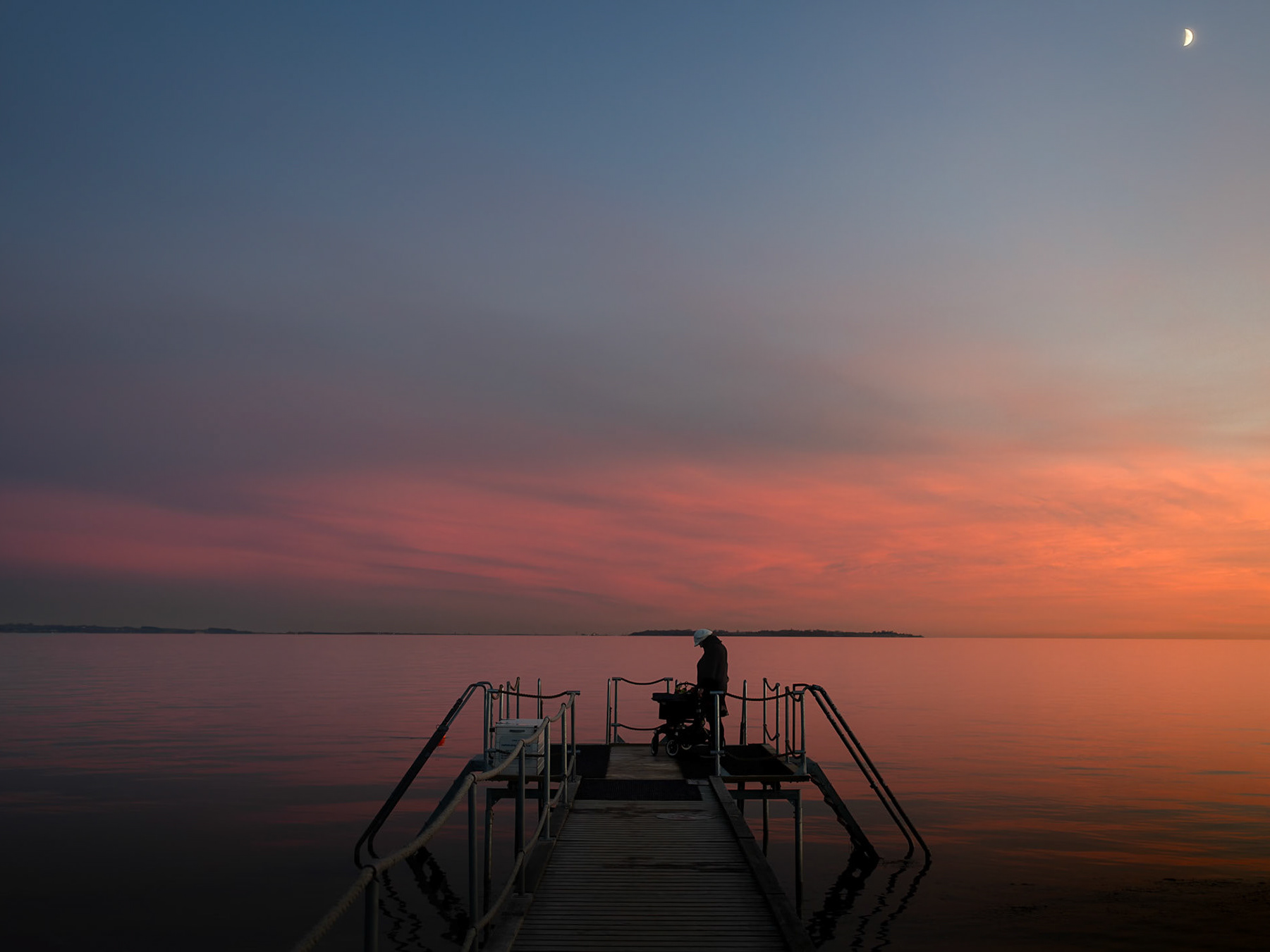 Seascapes captured at sunrise and sunset, highlighting the golden and blue hour tones.
